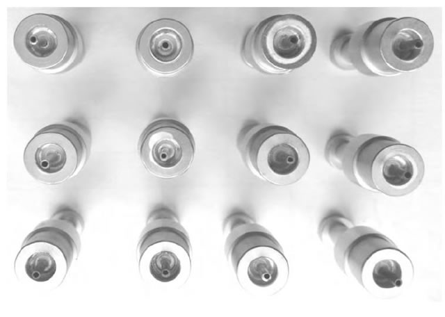 對于真空釬焊制作的釬焊件的密封性檢驗, 可以采用背壓法氦質譜儀檢漏。試驗樣件采用氧乙炔焰銀銅釬焊或氬弧焊等方法將釬焊件兩端開口封住, 再進行壓力充氦和氦質譜儀檢漏。氦漏率一般要求<4×10Pa·m/s。