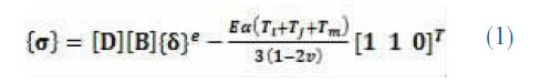 ANSYS 軟件具有優(yōu)異的傳熱和結(jié)構(gòu)分析功能, 可以通過間接的熱分析-結(jié)構(gòu)分析建立熱應(yīng)力分析模型,也可以通過直接耦合的結(jié)構(gòu)-傳熱建立分析模 型。結(jié)構(gòu)-傳熱耦合模型具有較高的計(jì)算精度,本文 采用耦合分析建立氧化鋁降溫過程中應(yīng)力的形成過 程。ANSYS 對(duì)熱應(yīng)力的計(jì)算有限元計(jì)算,計(jì)算公式 為(1):