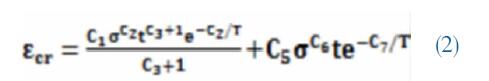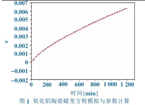 對(duì)于氧化鋁陶瓷采用EULER 向后積分法求解 蠕變,由于陶瓷降溫段時(shí)間較短,本文采用時(shí)間強(qiáng)化 的隱式蠕變模型求解,計(jì)算公式為(2):